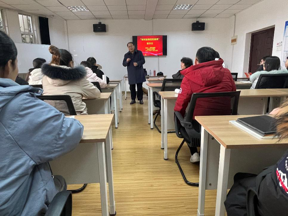 杨秀英教授在此次交流中,从新时代加强党员干部党性修养的重要意义、如何加强党性修养,做合格共产党员等方面进行了深入浅出的讲解。杨秀英教授指出,做一名合格共产党员要从以下几个方面落实:一是提高个人素养,忠于职守、尽职尽责,努力提高马克思主义理论水平,不断增强科学判断形势的能力以及应对复杂局面的能力;二是坚定理想信念,踏踏实实做事,勇担青春使命;三是关注时事热点,结合此次疫情充分认识社会主义制度的优越性,进一步加深对党的认识;四是强调干部的服务者身份,员工要跟老师做朋友,加强师生之间的互动交流,共同进步。杨秀英教授在党课最后提出期许,她希望,全体党员干部不断强化自我修炼、自我约束、自我塑造,努力成为合格党员,做社会的栋梁之才。
