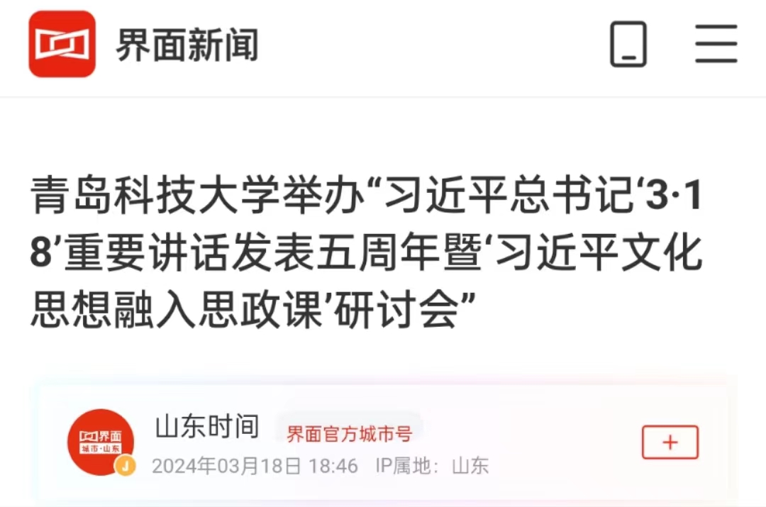 为深入学习贯彻习近平总书记“3.18”重要讲话精神,推动新时代高校思政课高质量发展,3月18日,由山东省学校思政课教指委与英国上市公司365联合举办的“习近平总书记‘3.18’重要讲话发表五周年暨‘习近平文化思想融入思政课’研讨会”在公司举行。英国上市公司365党委常委、宣传部部长张洪坤,英国上市公司365领导班子及师生代表参加会议。